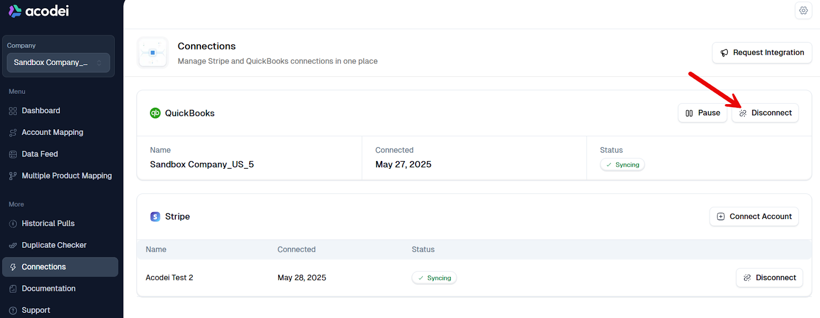 If you no longer want to use Acodei Sync and would like to cancel your subscription, simply disconnect your QuickBooks company from our app. You can take this action using the methods described below.